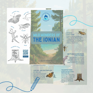 Τhis season, the Ionian Environment Foundation partnered with Scott Williams to create a colour-in pamphlet designed especially for young visitors to our islands. Through playful illustration and storytelling, the pamphlet introduces children to the rich wildlife of the Ionian Sea and its surrounding ecosystems — one remarkable species at a time.